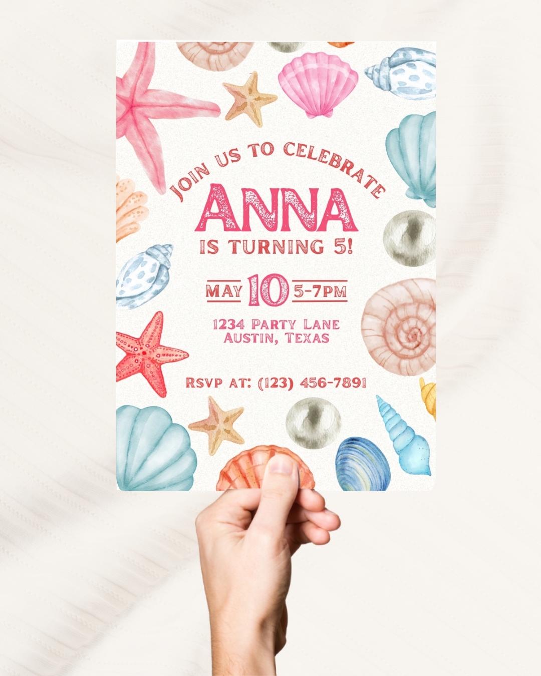 Sea Shell Invitation, Shellebrate Birthday Invite, Digital Download ...