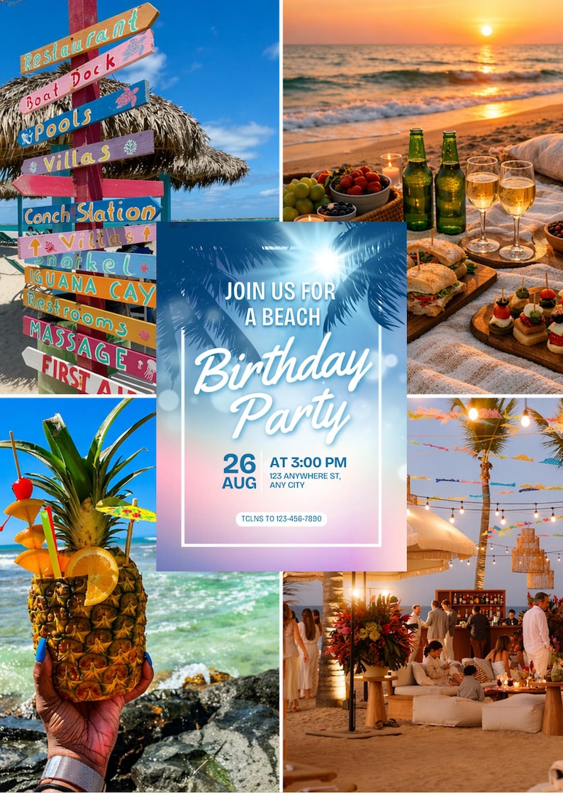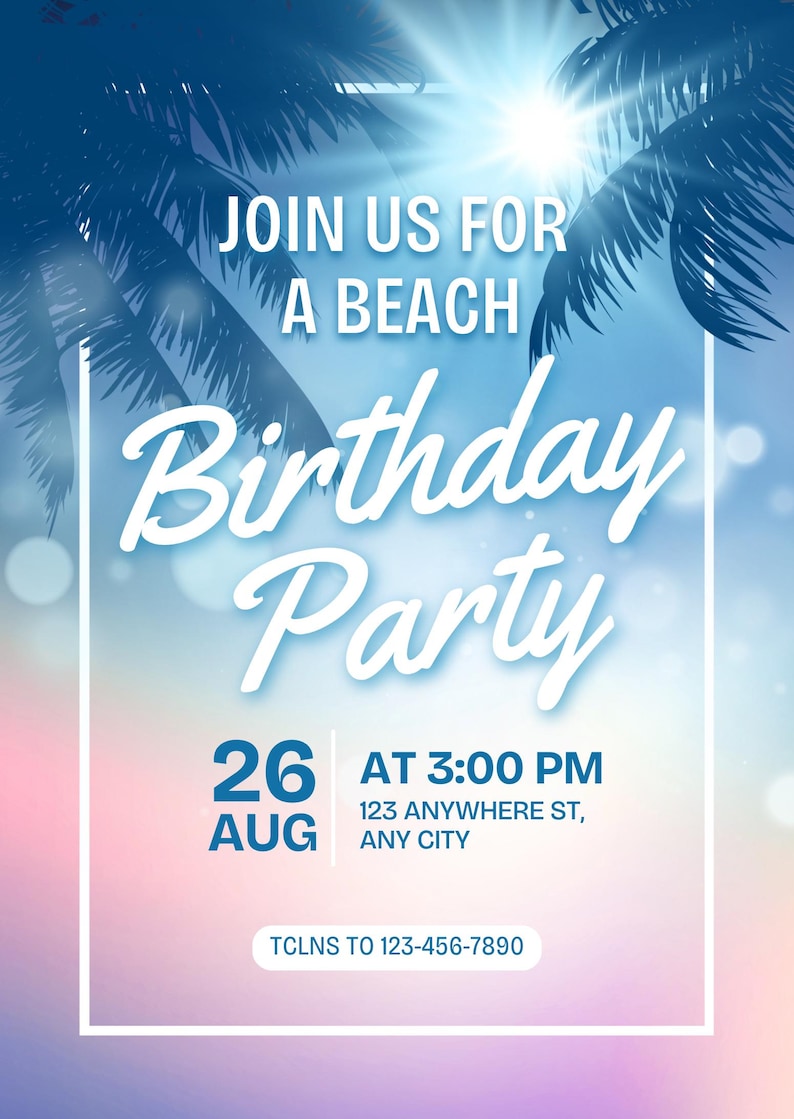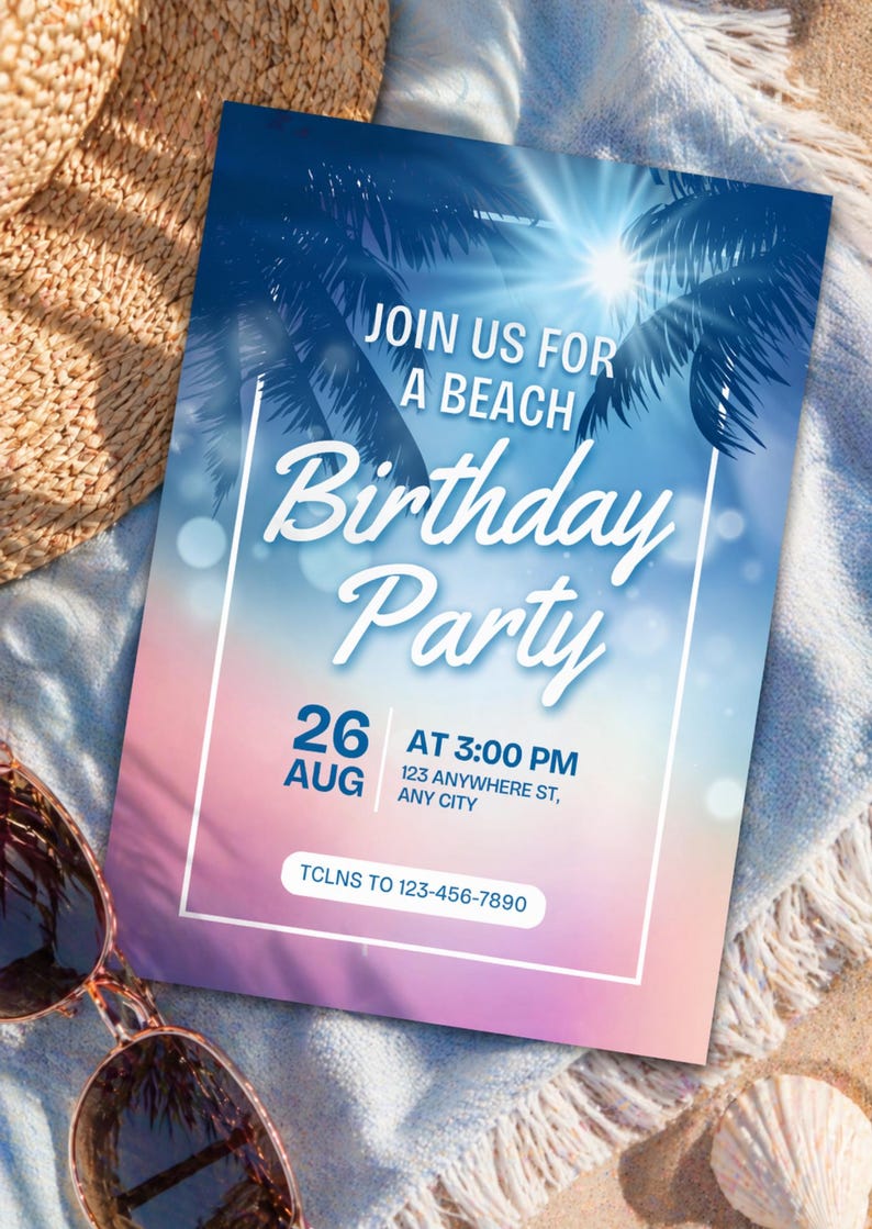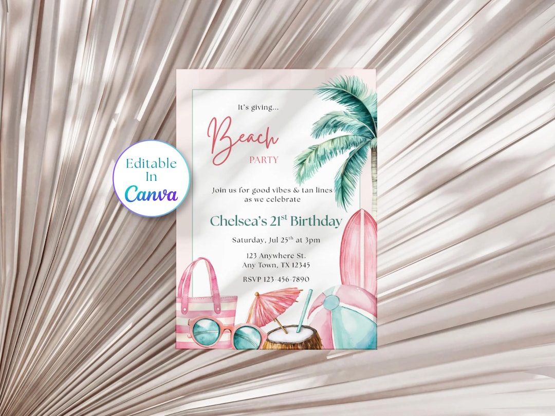 Beach Birthday Invitation Template Canva Editable | Summer Party Invite ...