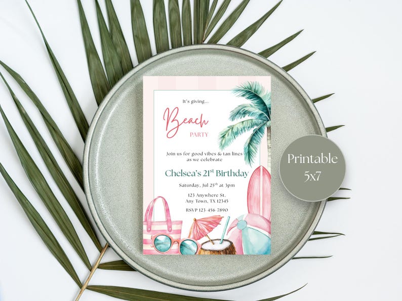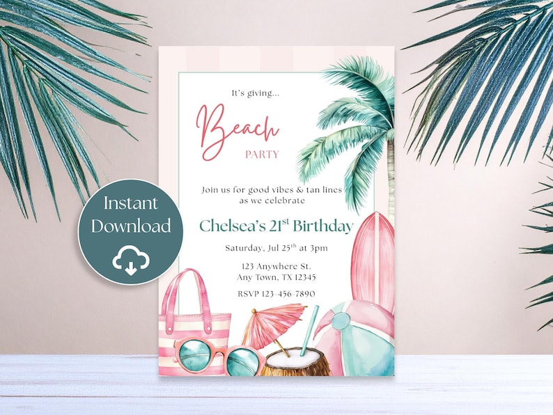 Beach Party Invitation Template, Tropical Birthday Invite, Summer Pool ...