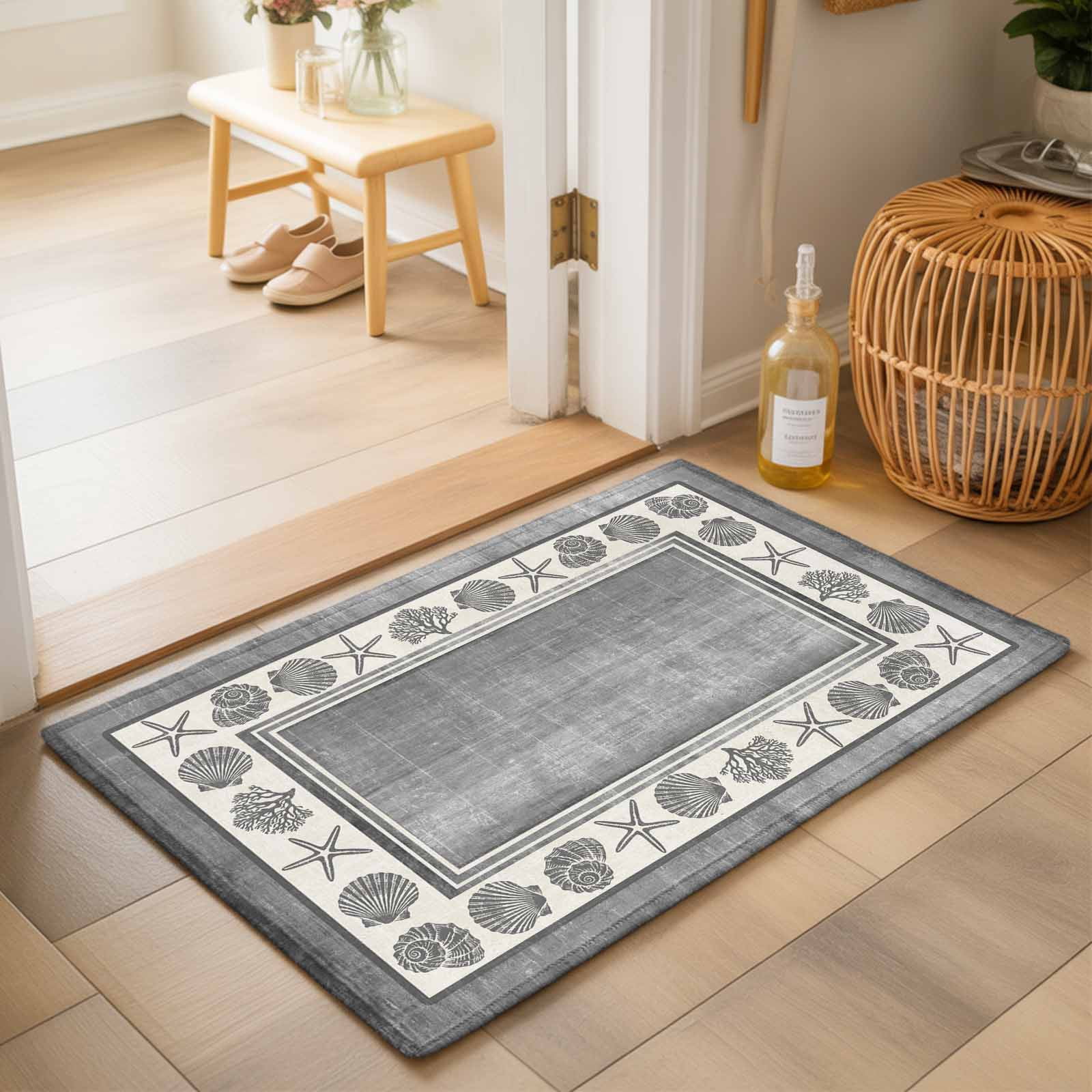 Bathroom Rugs 2x3 Ft, Grey Beach Coastal Non Slip Area Rugs for Kitchen ...