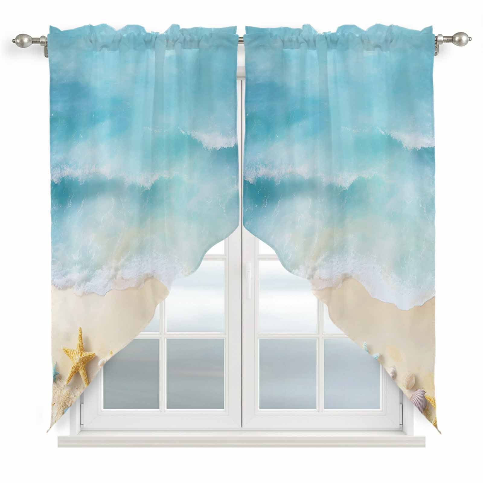 Coastal Blue Kitchen Curtains 54 Inch Length, Starfish Beach Ocean ...