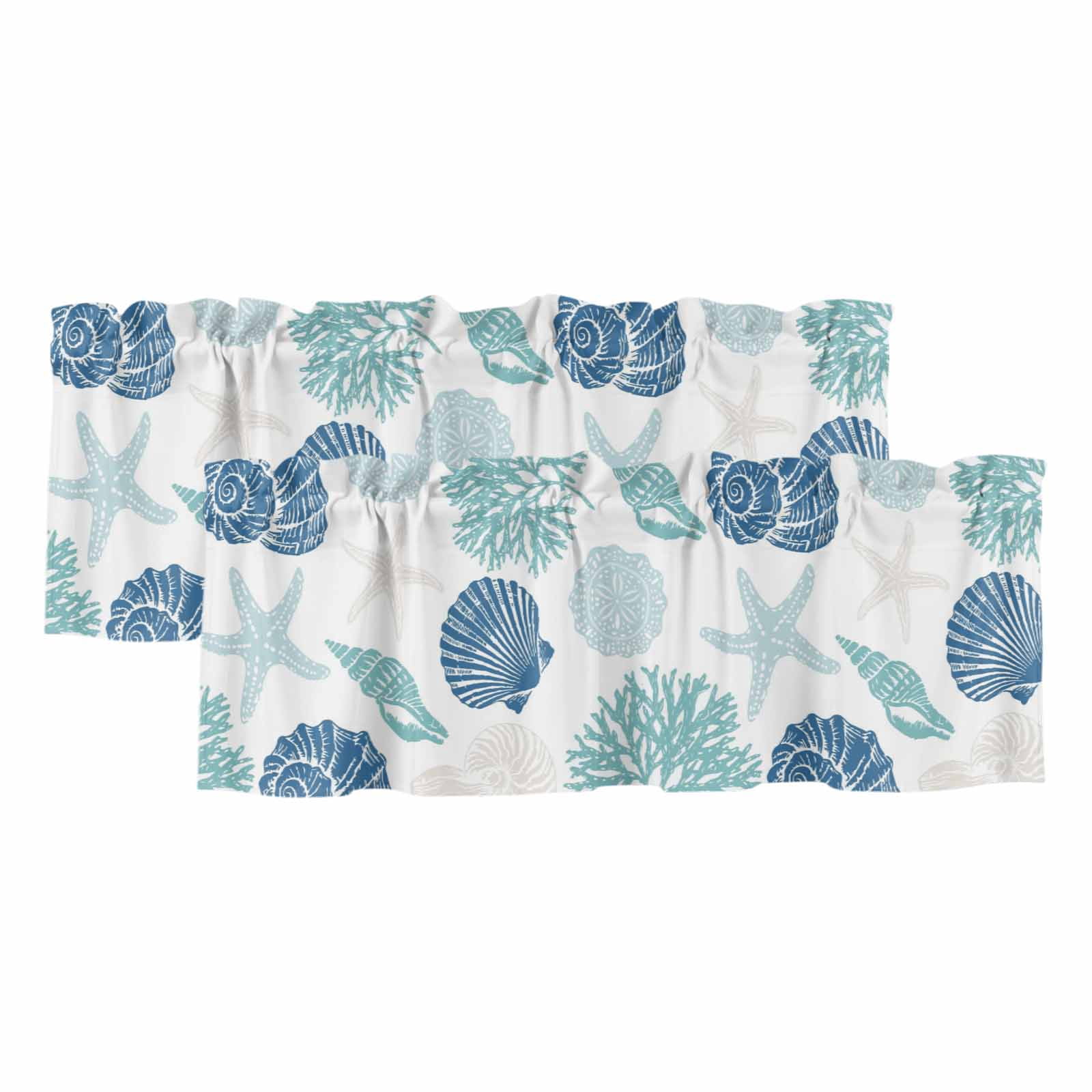Colorful Shell Coastal Swag Curtains for Kitchen Nautical Summer Beach ...