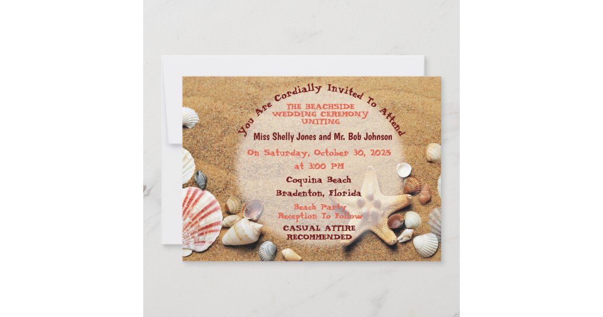 Sandy Beach With Sea Shells Invitation | Zazzle