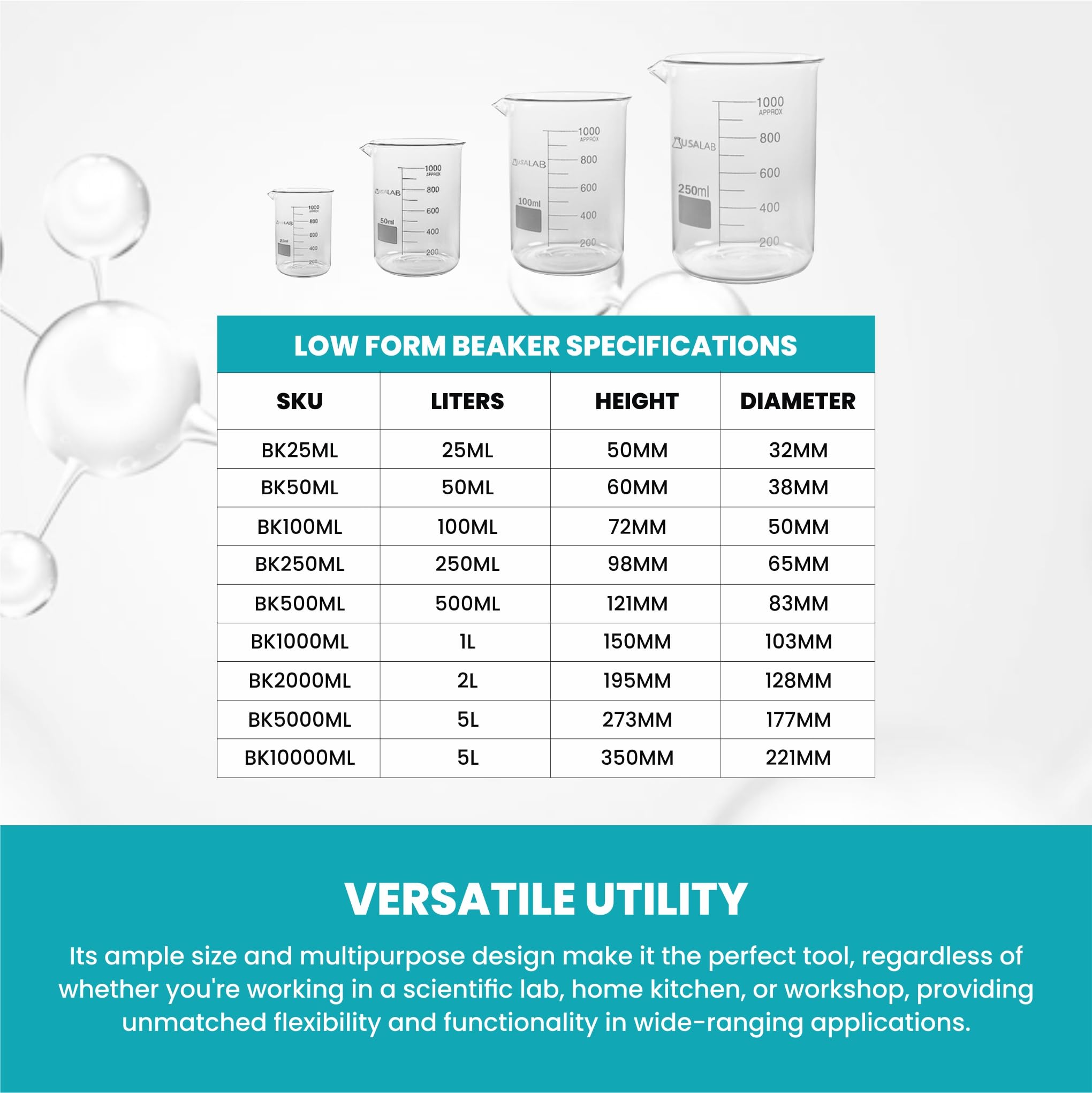 Labasics Glass Beaker Set, Borosilicate Glass Graduated Low Form ...