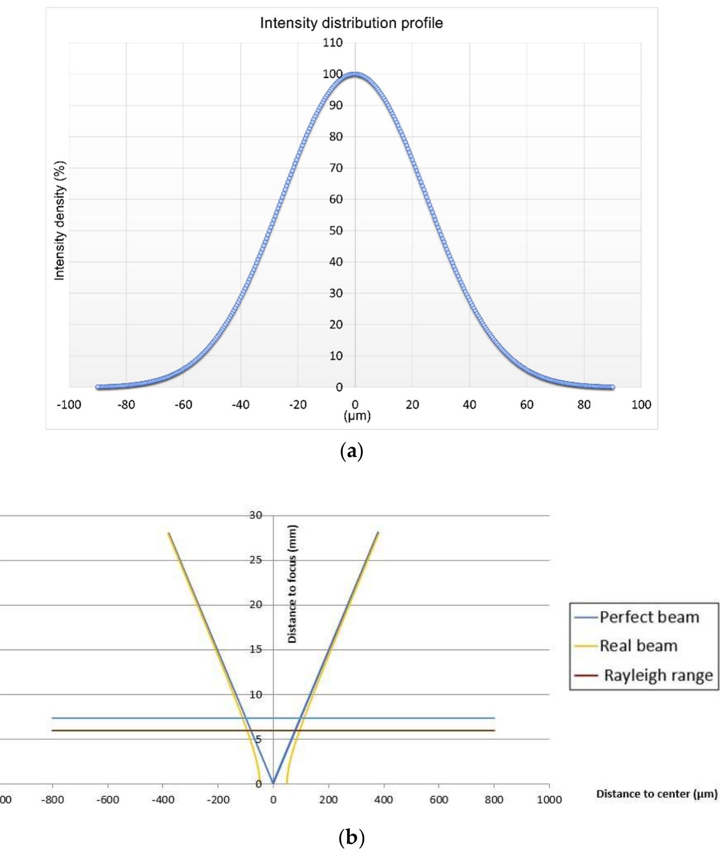 Intensity distribution profile of laser beam (a) and beam