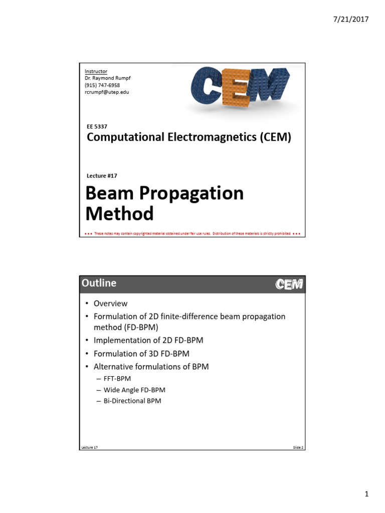 Lecture 17 - Beam Propagation Method | PDF | Waves | Fast Fourier Transform