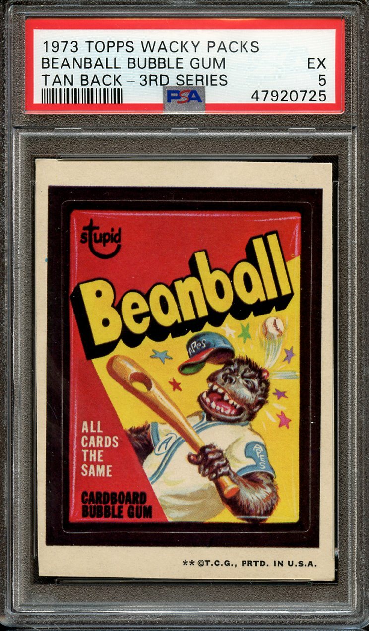 1973 TOPPS WACKY PACKS 3RD SERIES BEANBALL BUBBLE GUM TAN BACK-3RD SER ...