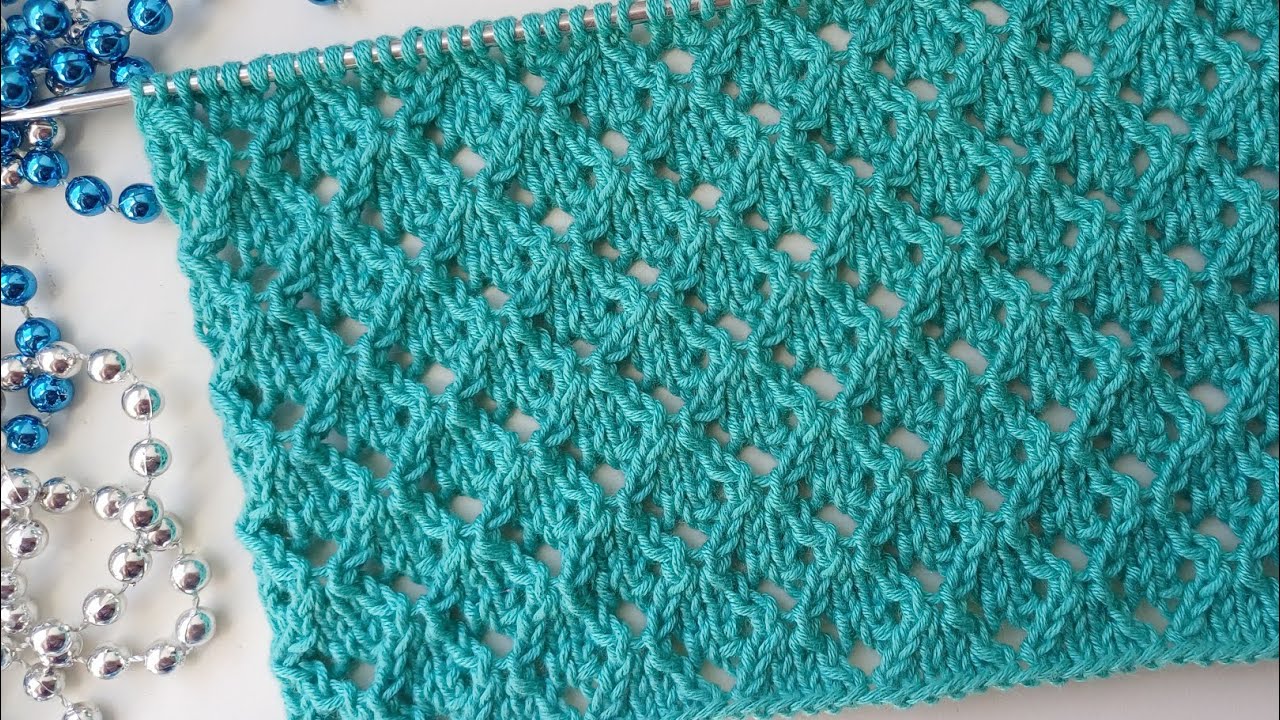 Красивый ажурный узор спицами ромбы с рельефом | Beautiful openwork ...