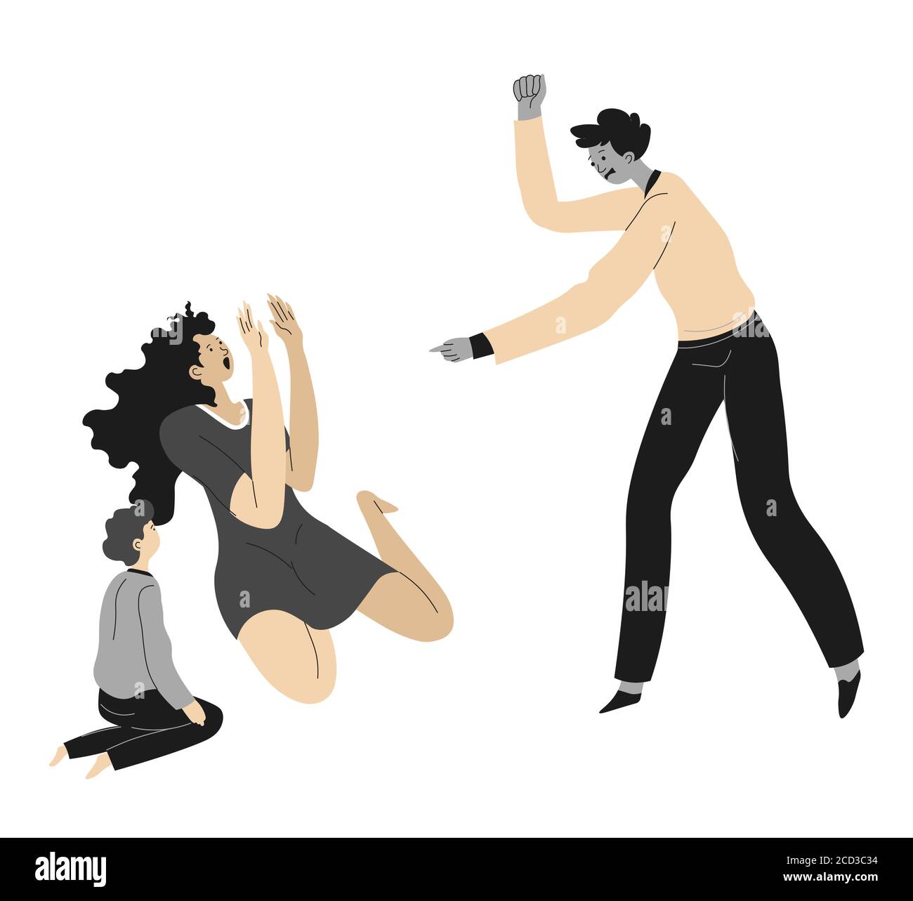 Man beating up his wife illustrating domestic violence. Stop violence ...