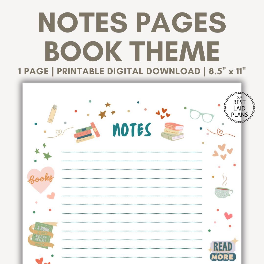 Digital Notes Page Book Aesthetic Note Page PDF Printable Notepad ...