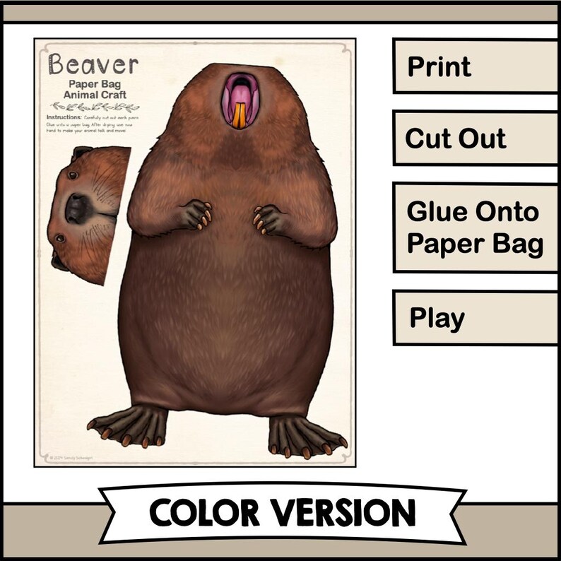 Beaver Paper Bag Puppet Craft Template - Simple Mom Project Store
