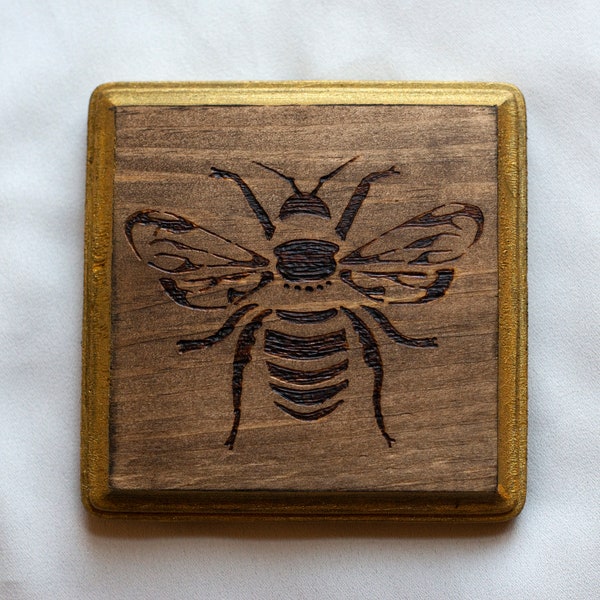 Artist uses Pyrography to create a custom bee design in a piece of wood ...