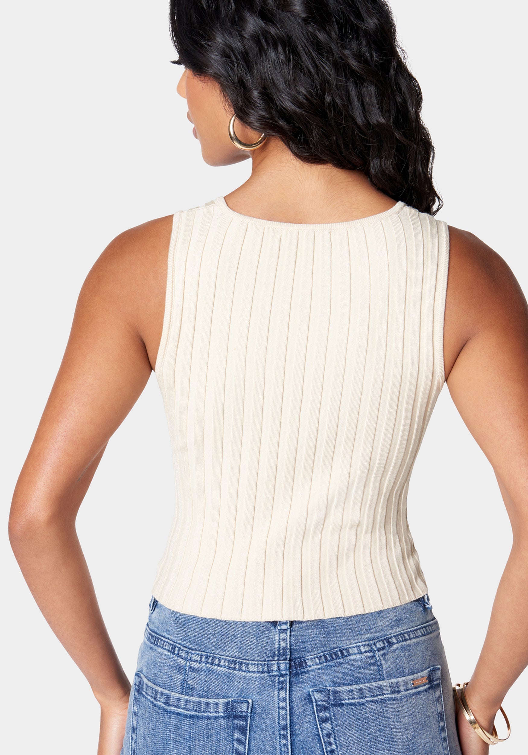 Sleeveless Deep V Neck Jacquard Top | bebe