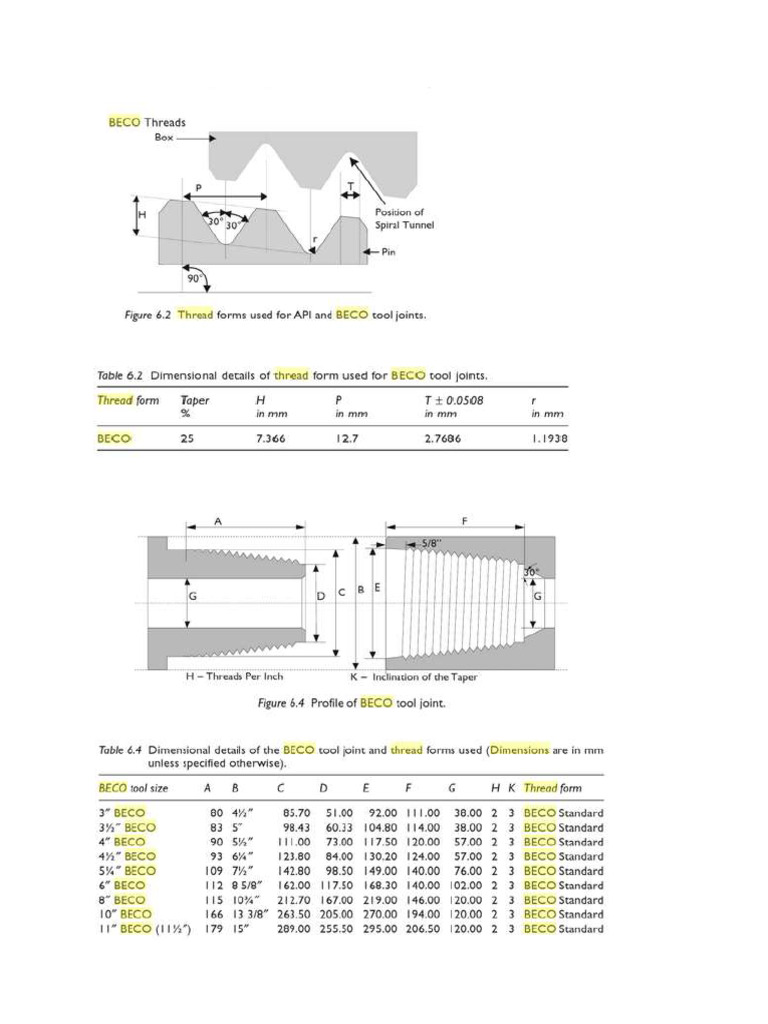 FYOU PMEC Leading Solutions BECO Thread Form Dimensions Table Data