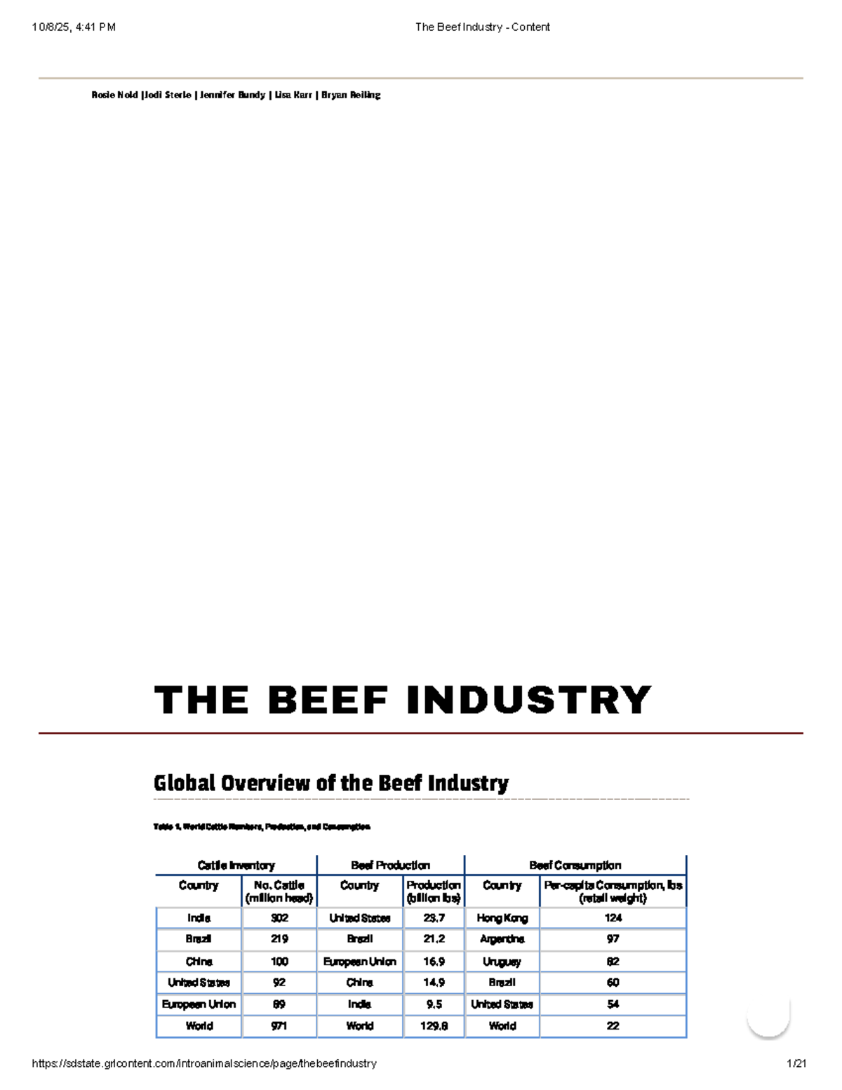 The Beef Industry: Overview, Management, and Production Insights (AGRI ...
