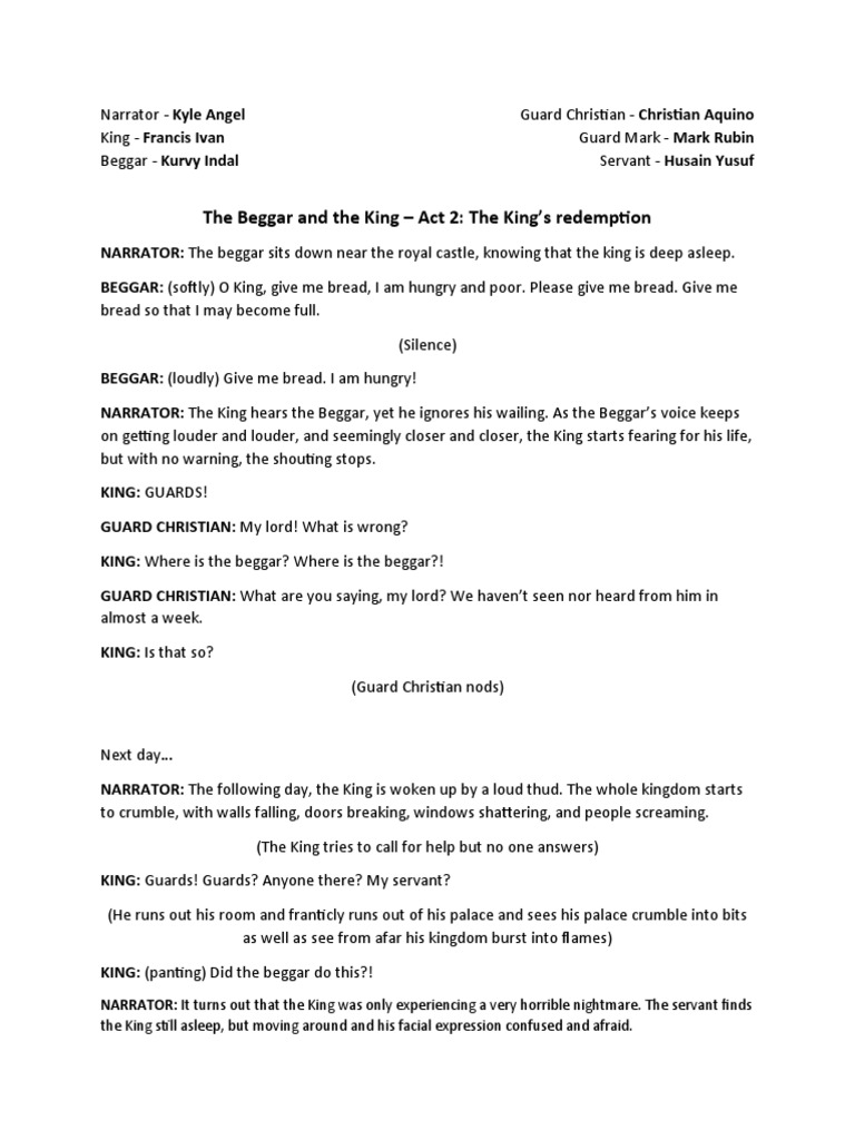 Act Two The Beggar and The King A Play Extension Group 3 Script | PDF