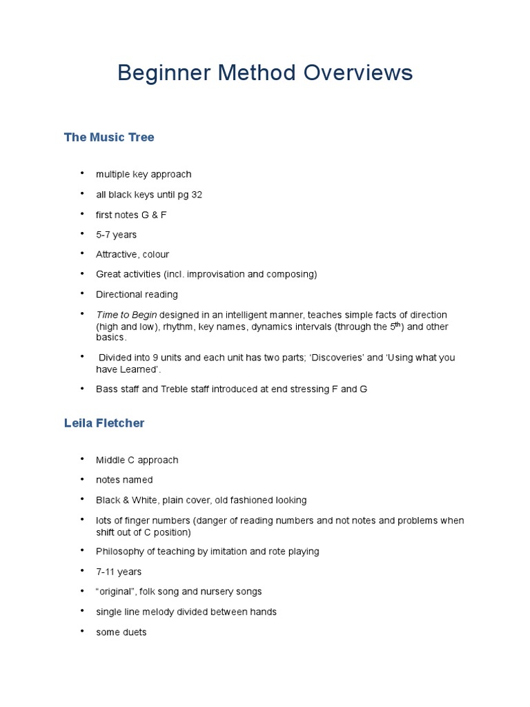 Beginner Method Overviews | PDF | Musical Notation | Piano