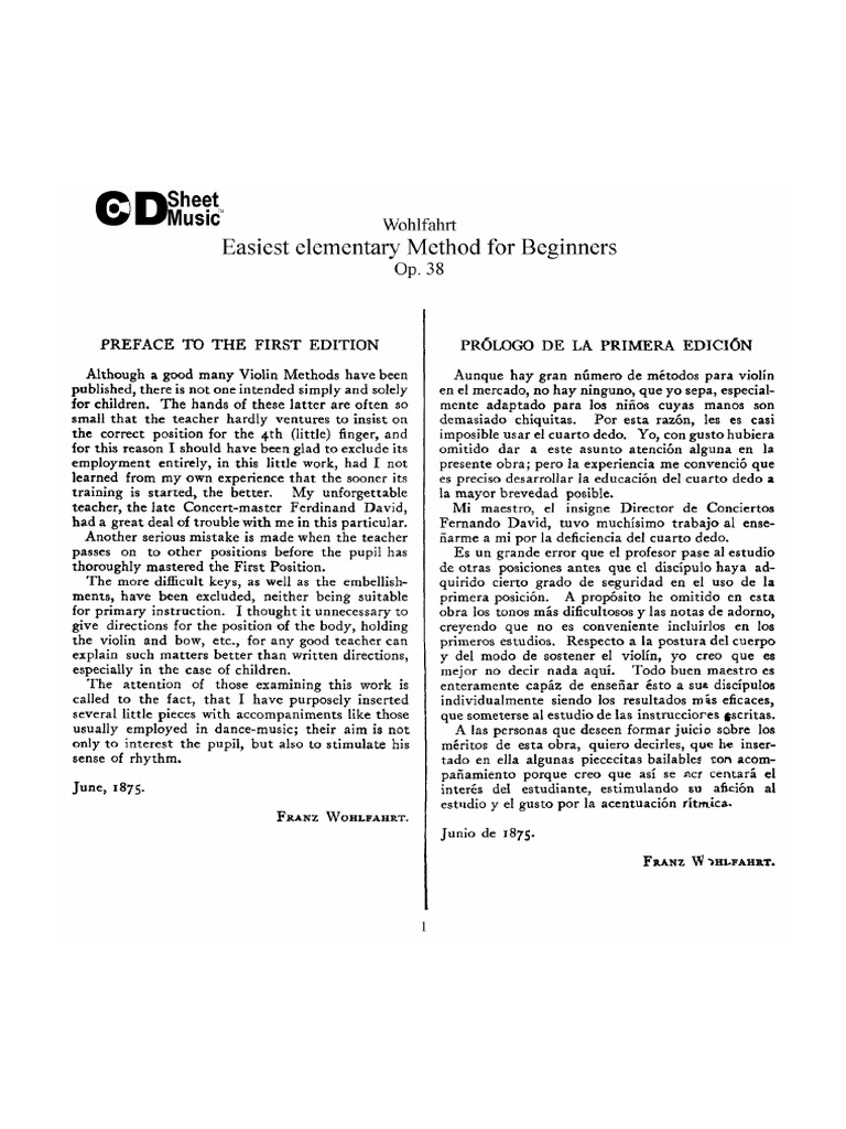 Wohlfahrt Easiest Elementary Method for Begginers Op 38 | PDF
