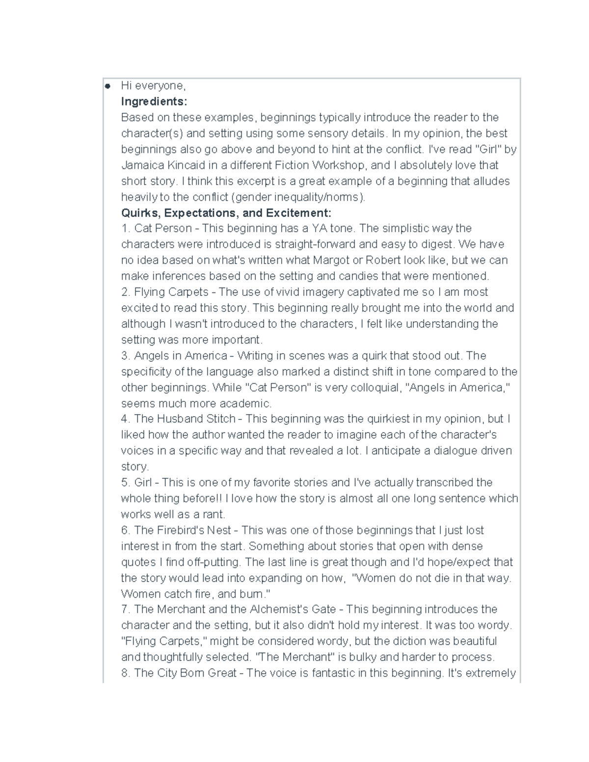 What makes a beginning discussion - Hi everyone, Ingredients: Based on ...