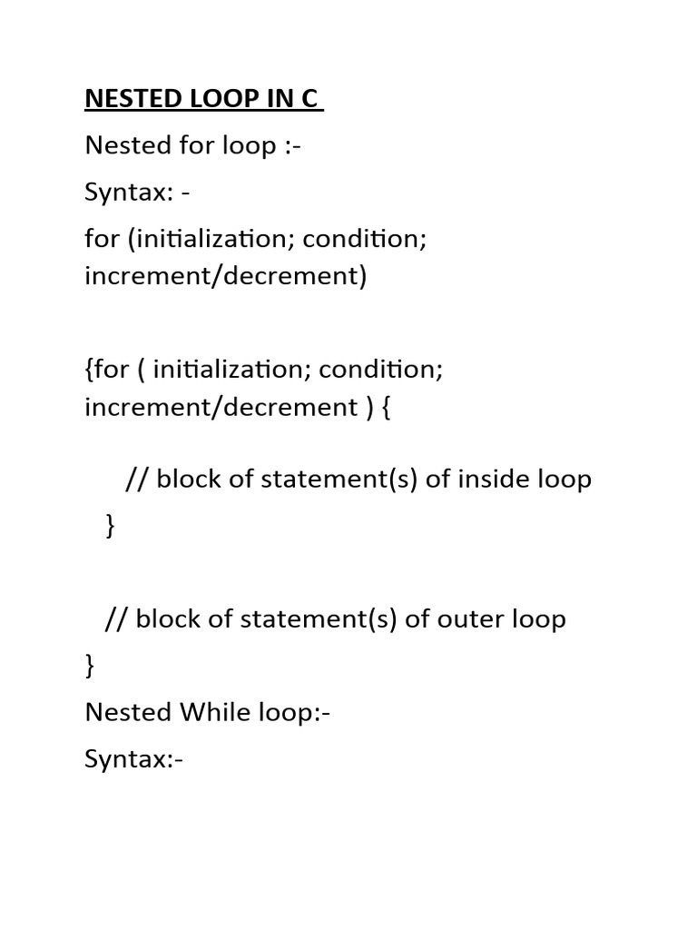 Nested Loops in C: Examples of Nested for, while, and do-while Loops ...