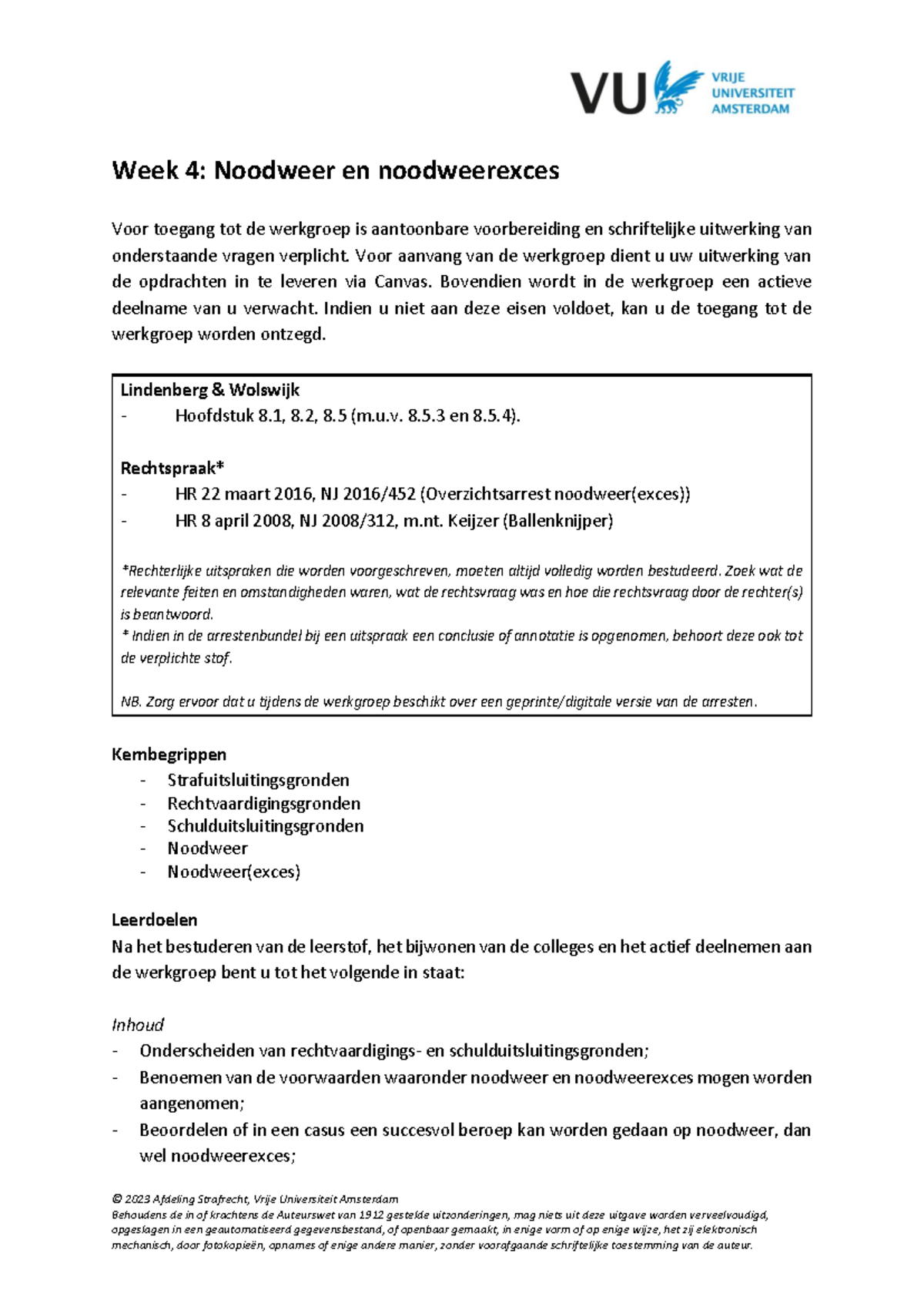Begsr WEEK 4: Noodweer en Noodweerexces - Studiegids en Leerdoelen ...