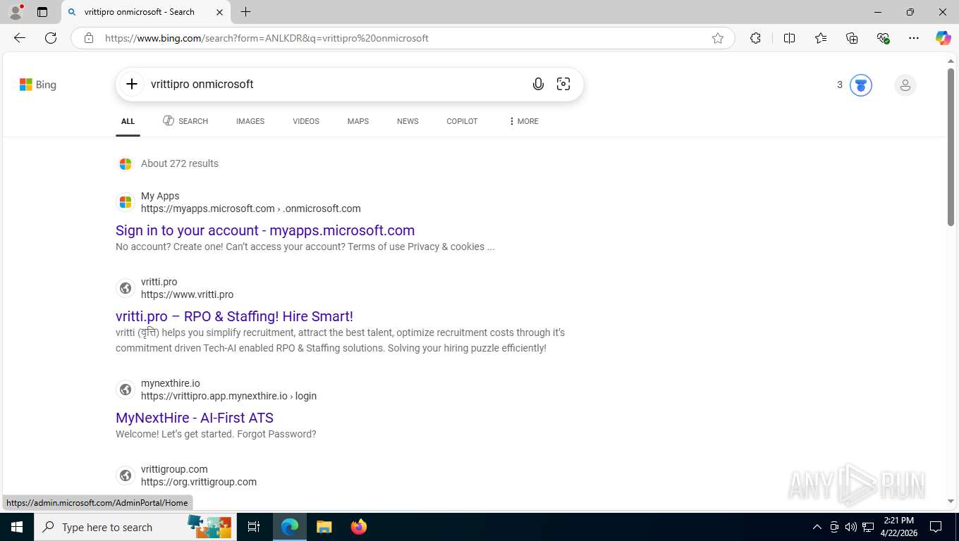 Malware analysis admin@vrittipro.onmicrosoft.com Malicious activity ...