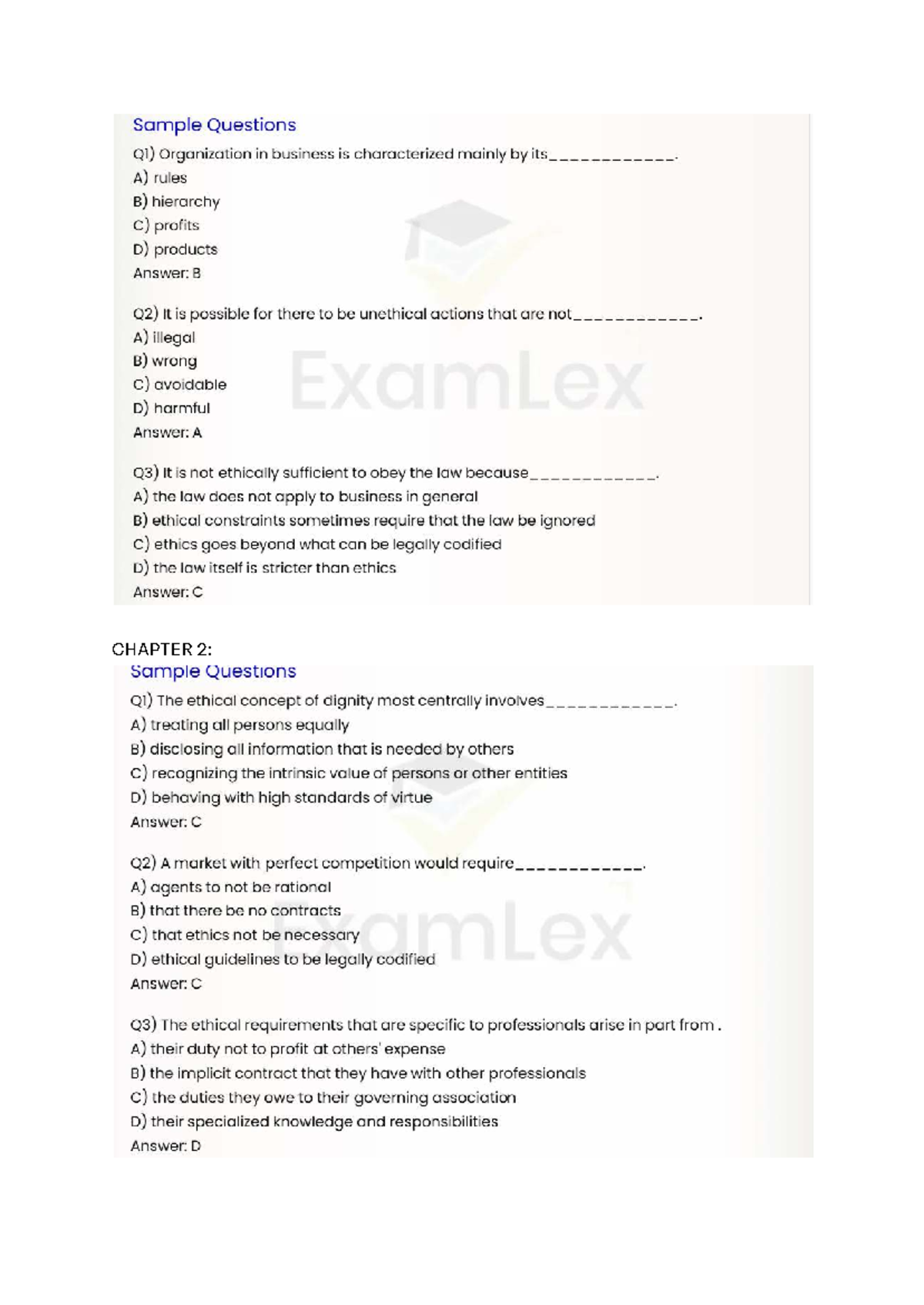 BUS 101: Sample Questions on Business Ethics and Organization - Studocu