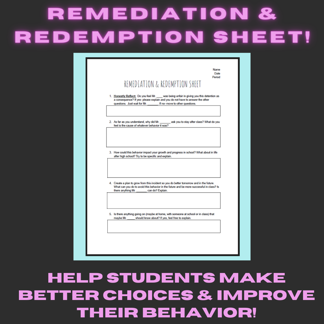 Remediation & Redemption Sheet (behavioral management support ...