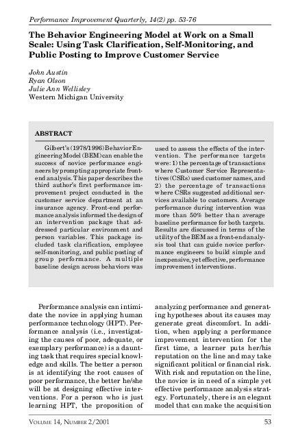 Updating the behavior engineering model - Chevalier - 2003 ...