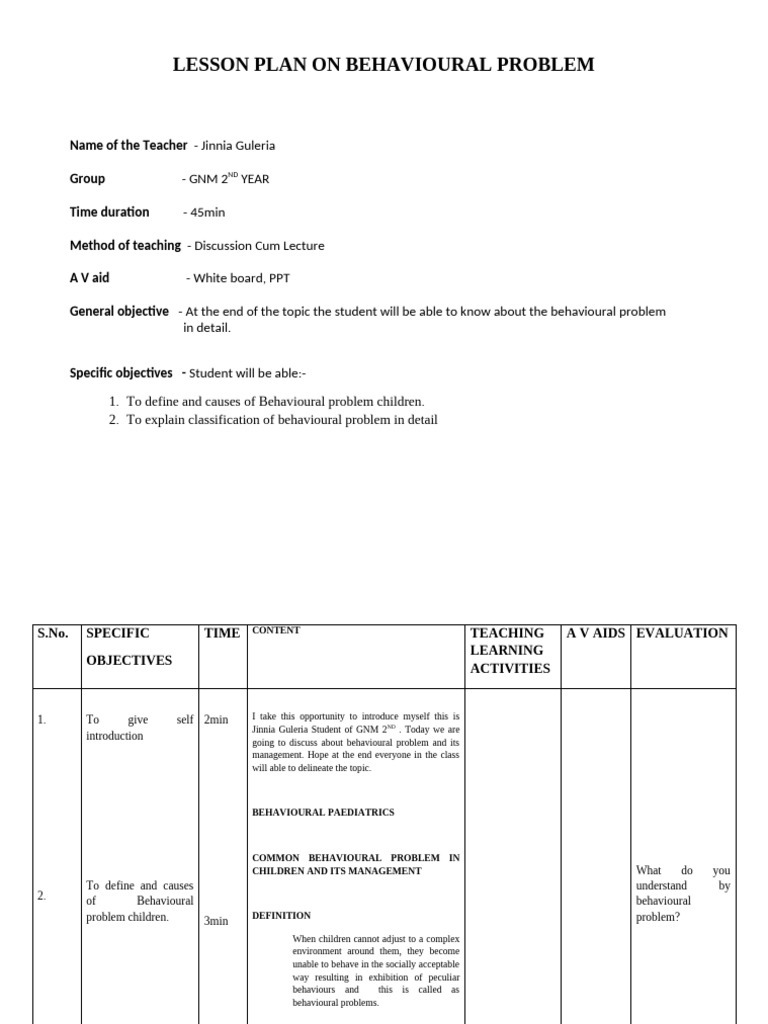 Behavior Lesson Plan Final Draft.pdf - | Course Hero