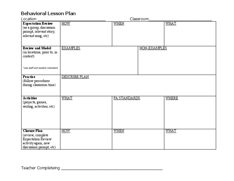 Behavior Intervention Lesson Plan Template - Have Fun Teaching