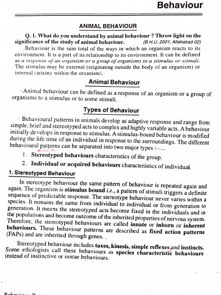 Animal Behaviour 1 | PDF | Instinct | Ethology