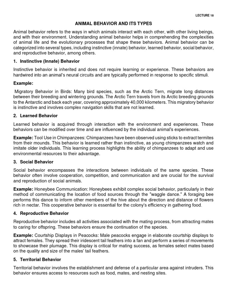 Types of Animal Behavior Explained | PDF | Ethology | Behavior