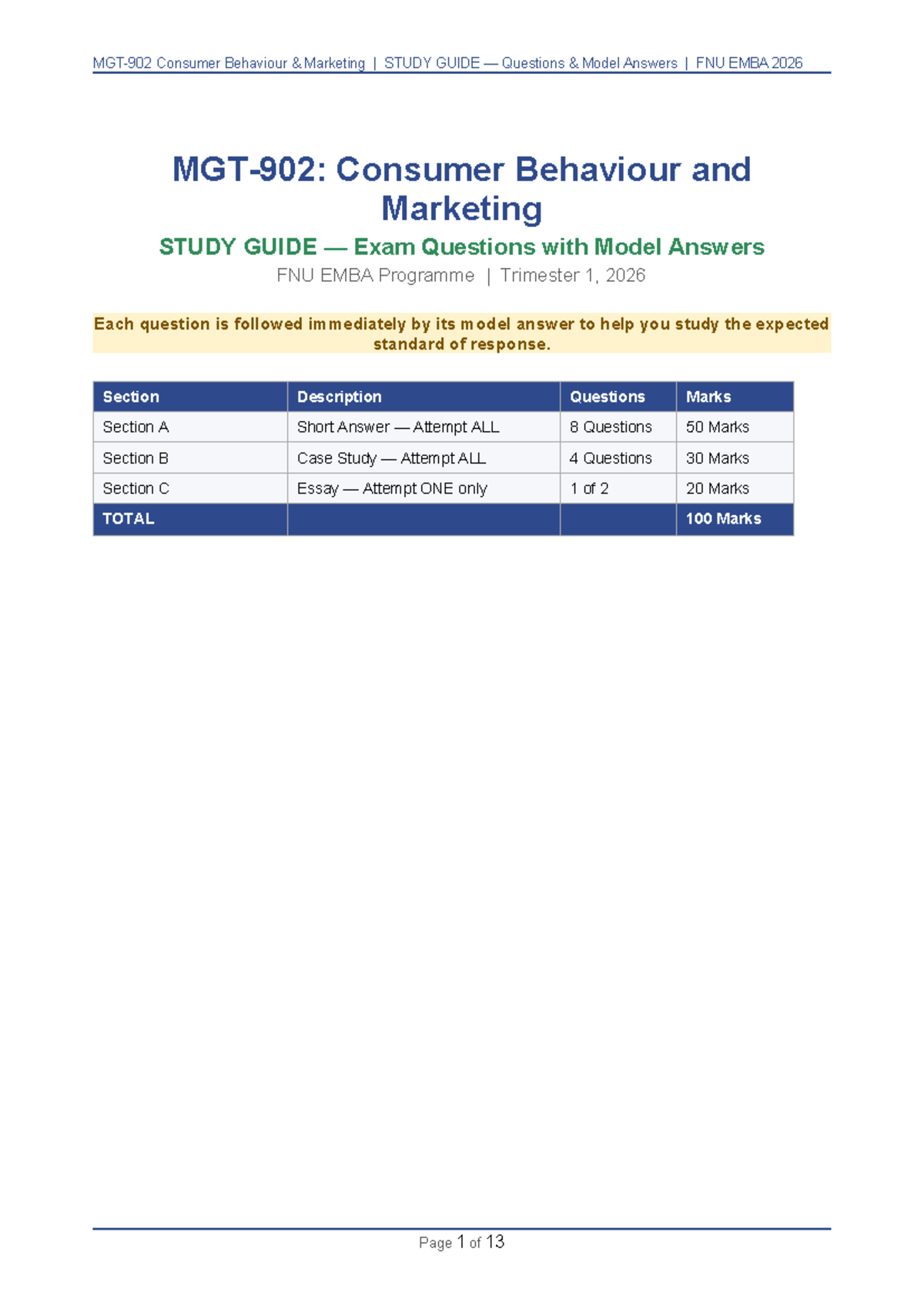Consumer Behaviour & Marketing Exam Study Guide Q&A FNU EMBA 2026 - Studocu