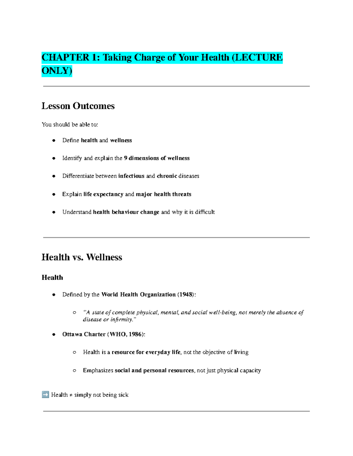 CHAPTER 1: Health Dimensions & Behaviour Change (LECTURE NOTES) - Studocu