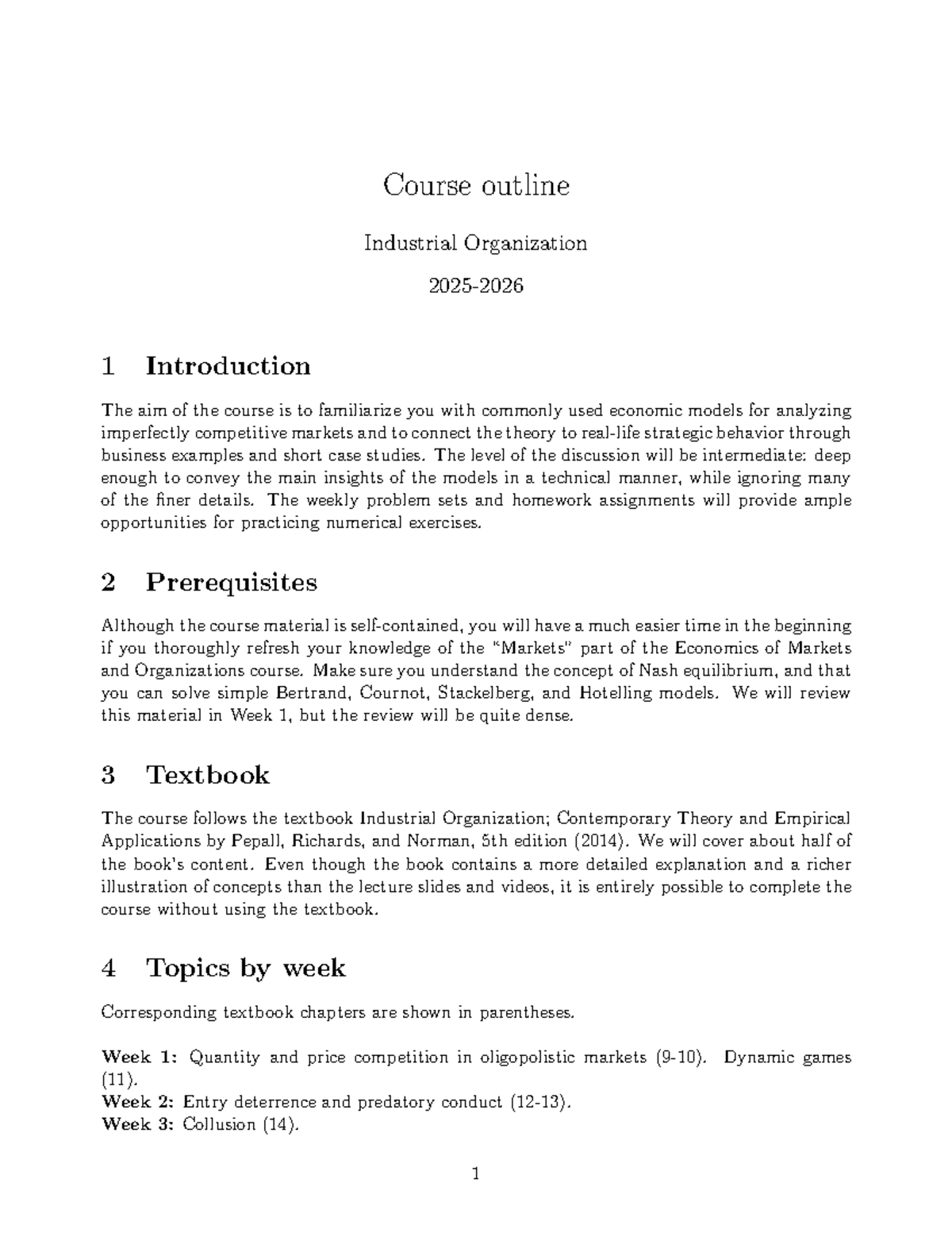Industrial Organization 1: Course Outline and Key Details - Studeersnel