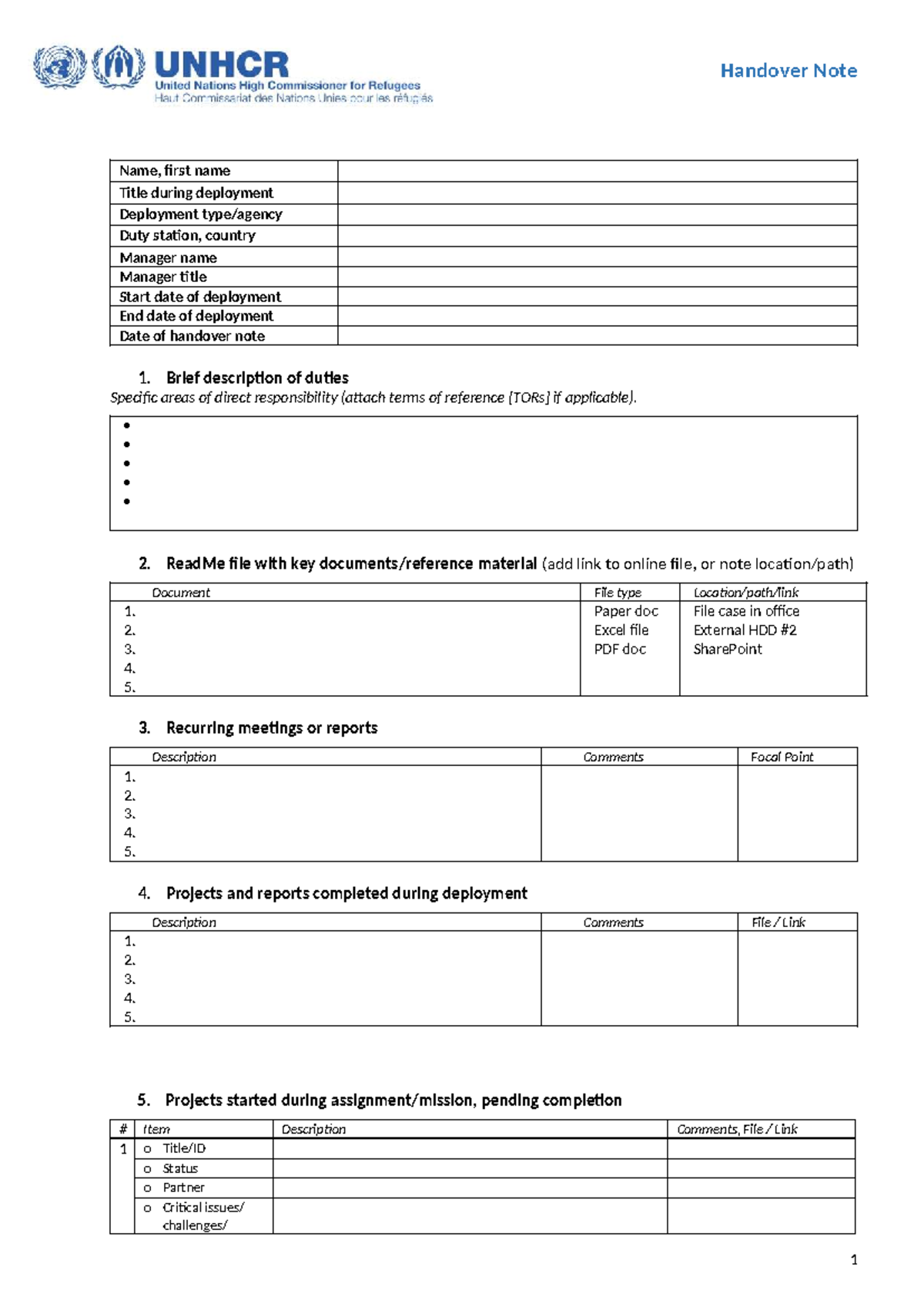 Handover Note Template for Deployment Management - Studocu