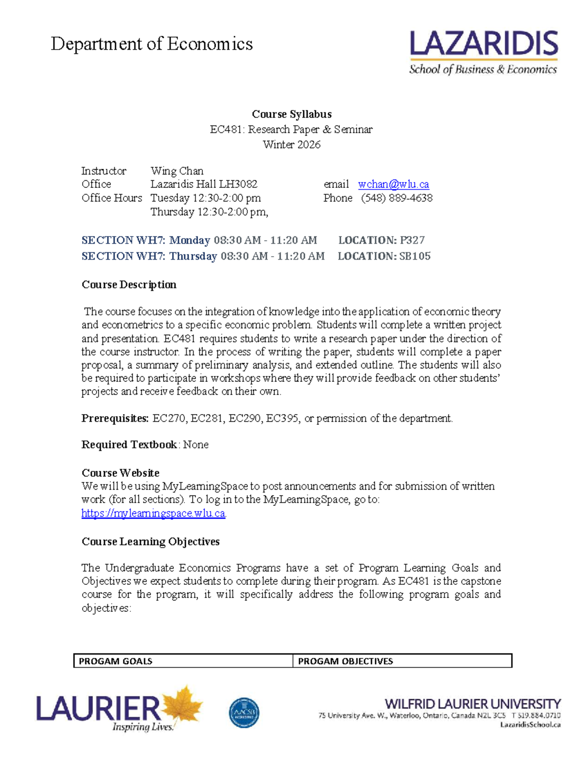 EC481: Research Paper Seminar Winter 2026 Course Outline - Studocu