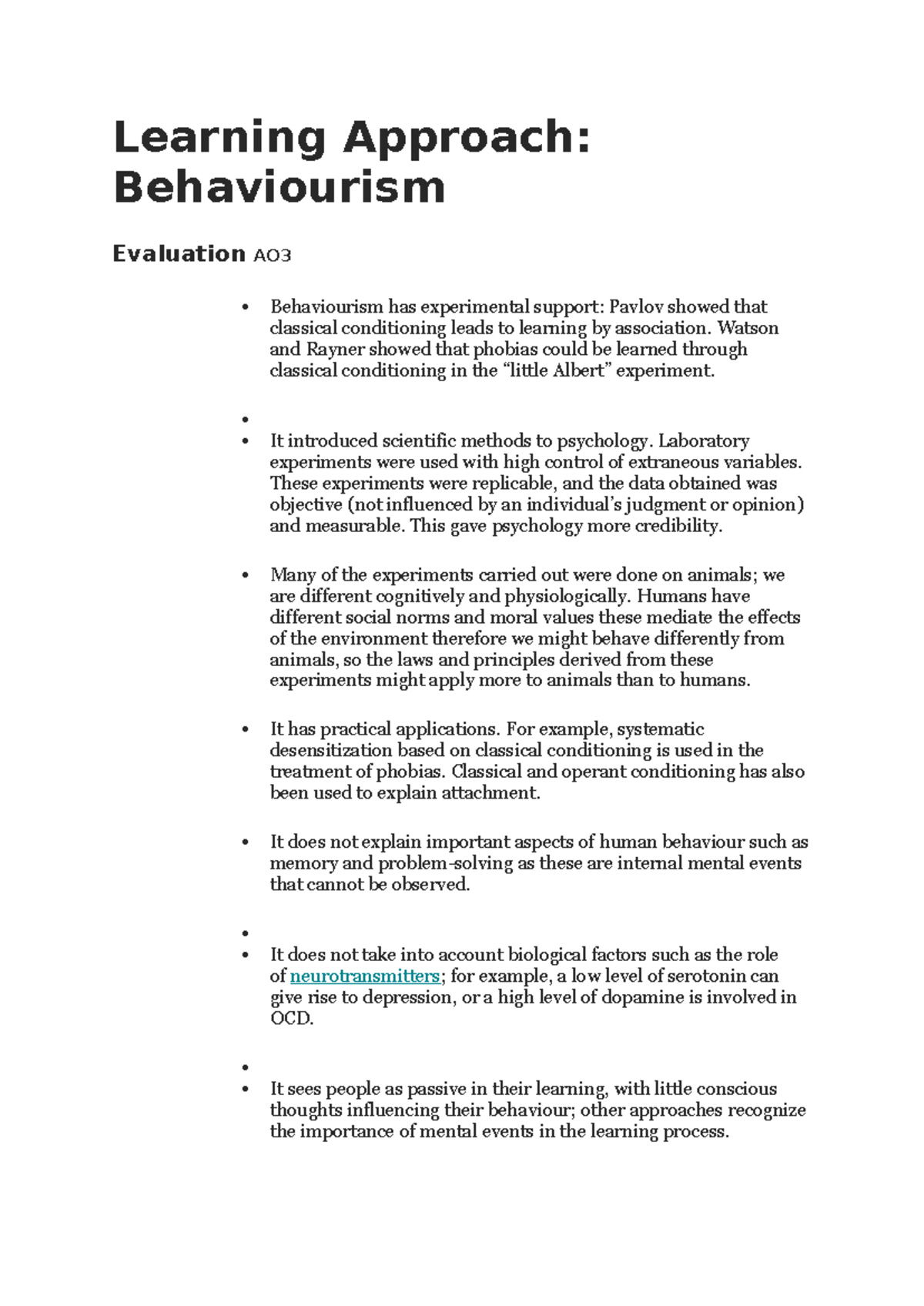 A-Level Psychology - LEARNING APPROACHES: BEHAVIOURISM [Approaches in ...
