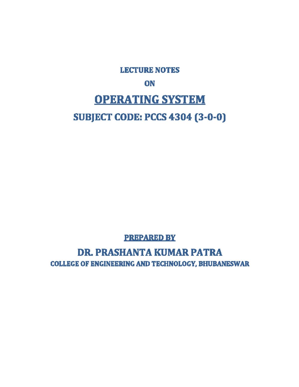 Bena - for studies - LECTURE NOTES ON OPERATING SYSTEM SUBJECT CODE ...