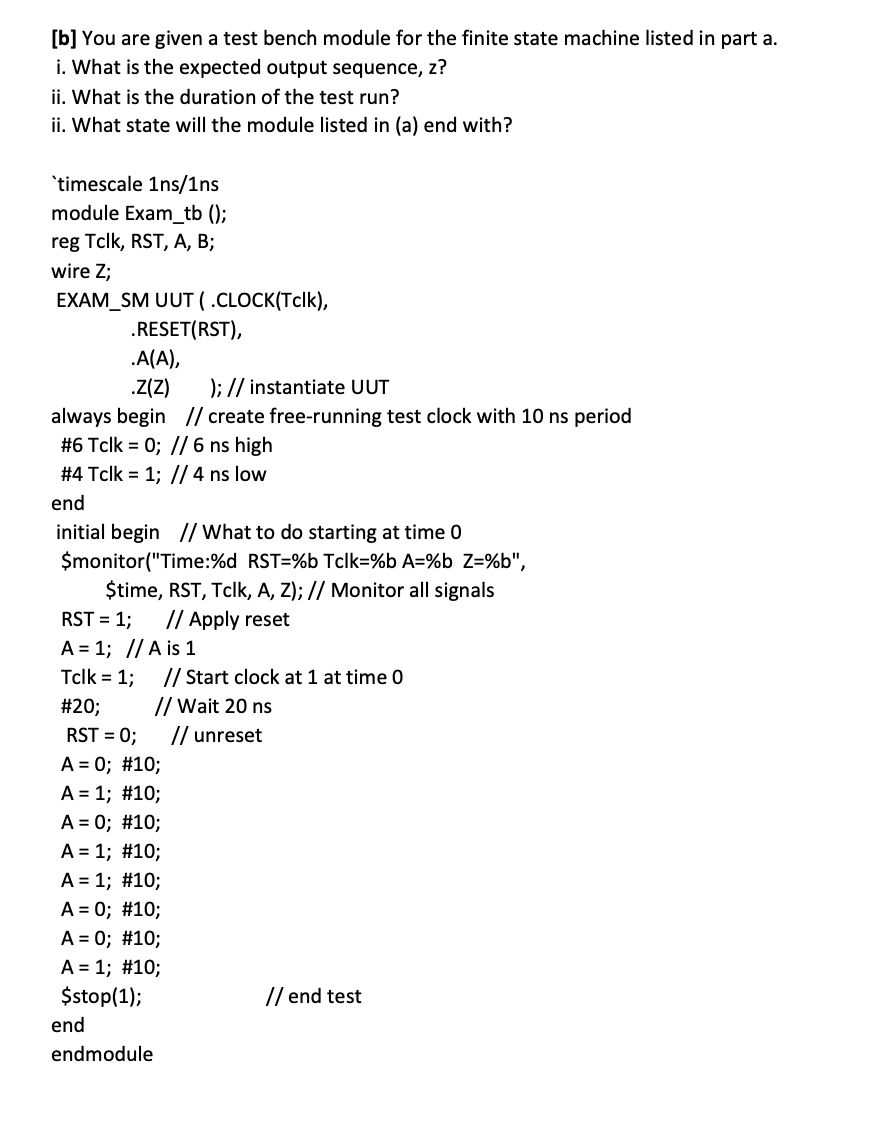 Solved [b] You are given a test bench module for the finite | Chegg.com