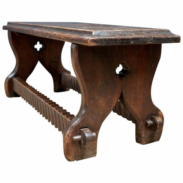 Great, beautifully carved 19th century antique oak church bench in ...
