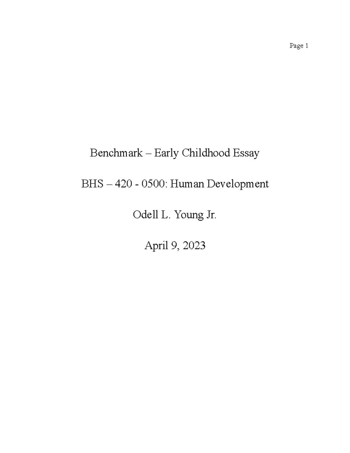 BenchmarkโEarly Childhood Essay - Benchmark โ Early Childhood Essay BHS ...