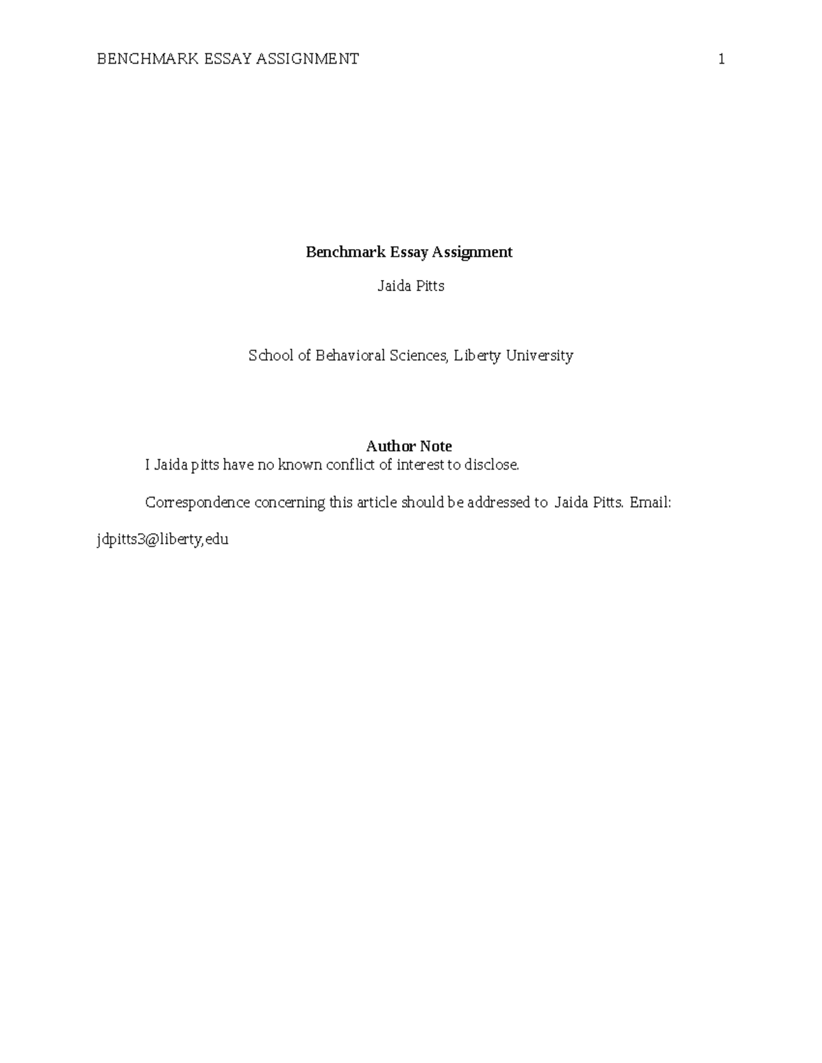 Benchmark Essay Assignment - Benchmark Essay Assignment Jaida Pitts ...