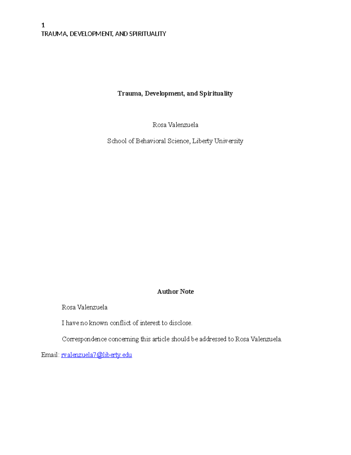 Benchmark Essay 1 - TRAUMA, DEVELOPMENT, AND SPIRITUALITY Trauma ...