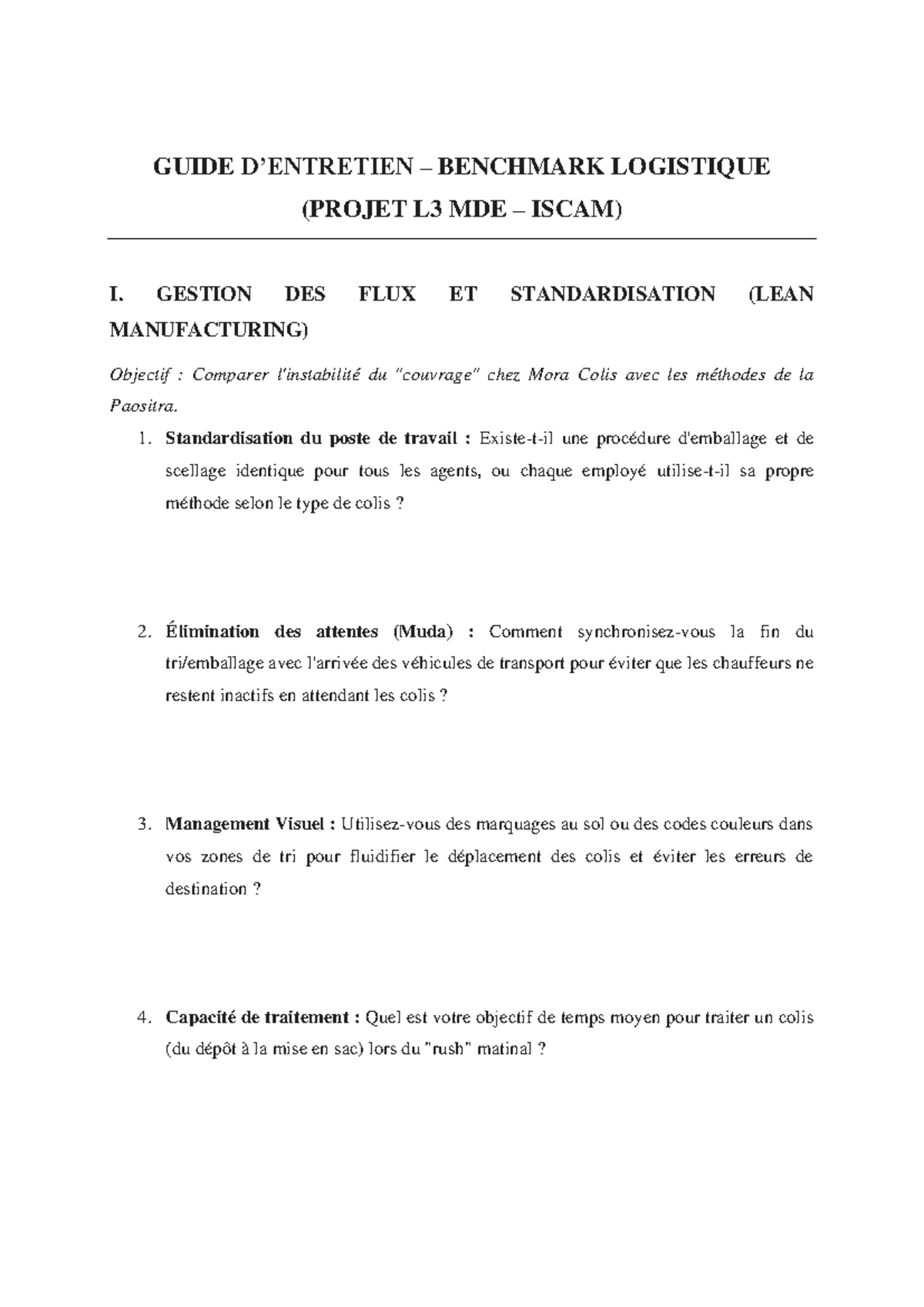 Guide Benchmark Logistique (Projet L3 MDE ISCAM) - Gestion des Flux et ...