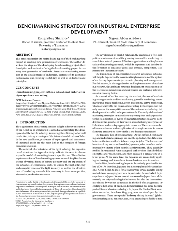 (PDF) Benchmarking Strategy for Industrial Enterprise Development