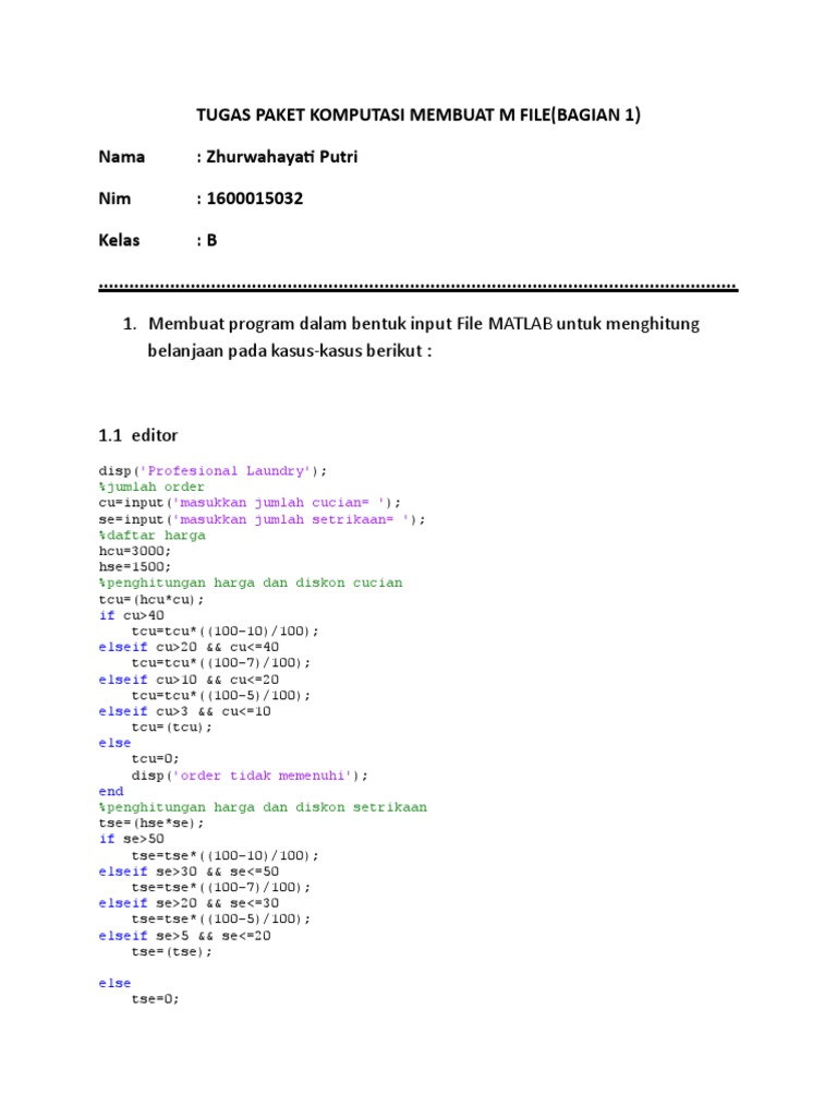 Membuat Program Dalam Bentuk Input File MATLAB Untuk Menghitung ...