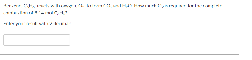 Solved Benzene, CoHo, reacts with oxygen, O2, to form CO2 | Chegg.com