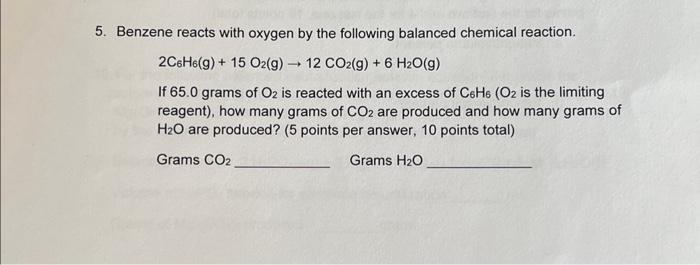 Solved 5. Benzene reacts with oxygen by the following | Chegg.com
